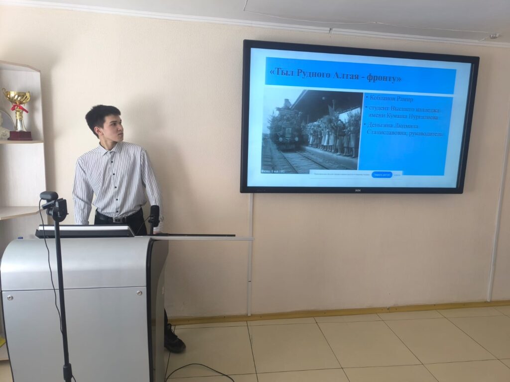31 марта 2026 года в Казани состоялся Молодёжный форум «Время выбрало нас», организованный ГАПОУ «Казанский торгово-экономический техникум. В этом Форуме принял участие студент нашего колледжа из группы 22-ПРО-1 Кобланов Рамир с докладом «Рудный Алтай — фронту». В этом докладе были освещение вопросы вклада жителей ВКО в победу над фашизмом. Были озвучены такие аспекты, как эвакуация предприятий и налаживание их работы в нашей области, Трудовая армия, медицинская помощь фронту, выпуск пуль и шашек, отправка сельхозпродукции и многое другое.